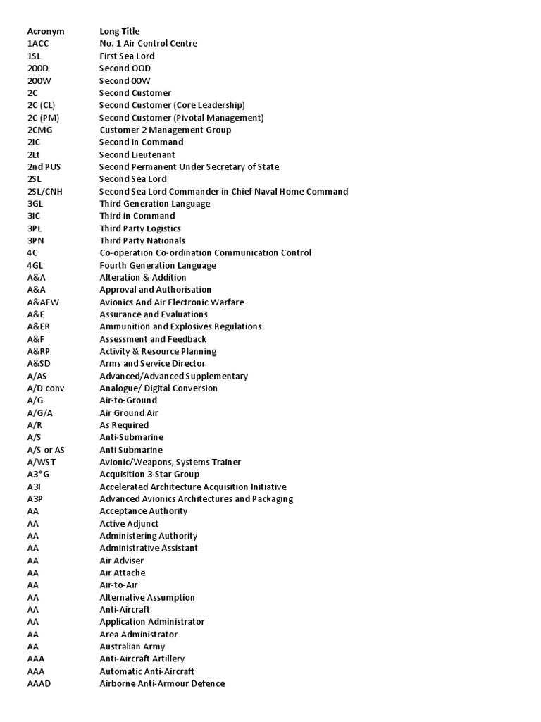 20140808 MOD Acronyms and Abbreviations Anti Aircraft Warfare